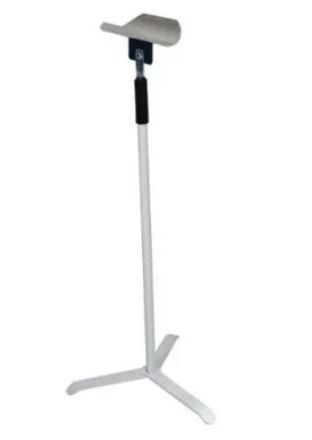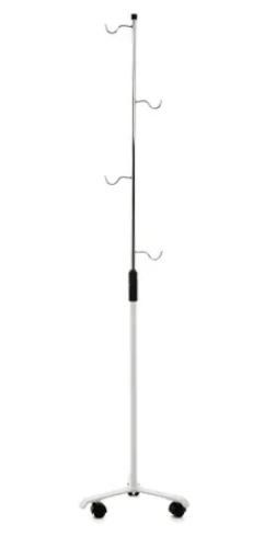 Construído em tubos redondos de aço inoxidável com acabamento polido. Coluna receptora da haste com diâmetro de 1 polegada, com anel para evitar amassamento e desgaste da haste, regulagem de altura por sistema de pressão através de roseta, haste em tubo de 3/4 polegadas de diâmetro e 1,20 mm de espessura de parede, com 4 ganchos na parte superior. Base em quadripé em ferro fundido com rodízios de 2" tipo "bola".
