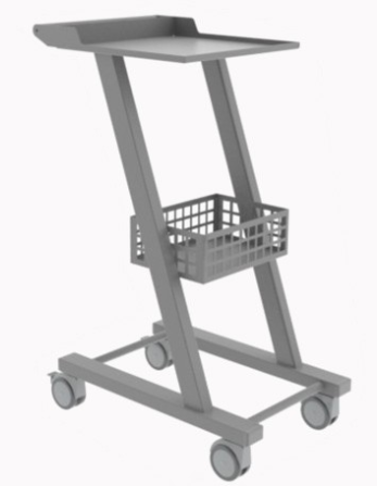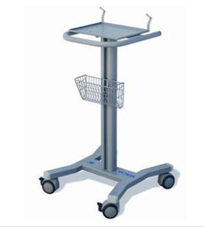 ButtonCarro auxiliar de transporte e suporte para Eletrocardiógrafo em estrutura metálica com rodízios.